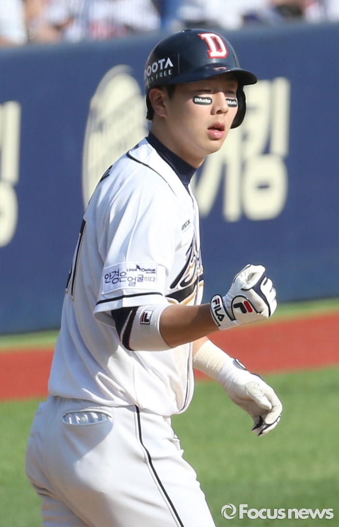| △ 2타점 적시타 친 두산 박건우 |