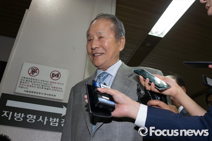 (서울=포커스뉴스) 포스코 비리에 연루된 혐의를 받고 있는 이상득 전 의원이 1차 공판에 출석하기 위해 30일 오전 서울 서초구 서울중앙지방법원으로 들어서고 있다.