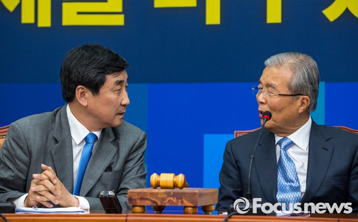 (서울=포커스뉴스) 김종인(오른쪽) 더불어민주당 비상대책위 대표와 이종걸 비상대책위원이 30일 오전 서울 여의도 국회에서 열린 비상대책위원회의에 참석해 대화 나누고 있다.