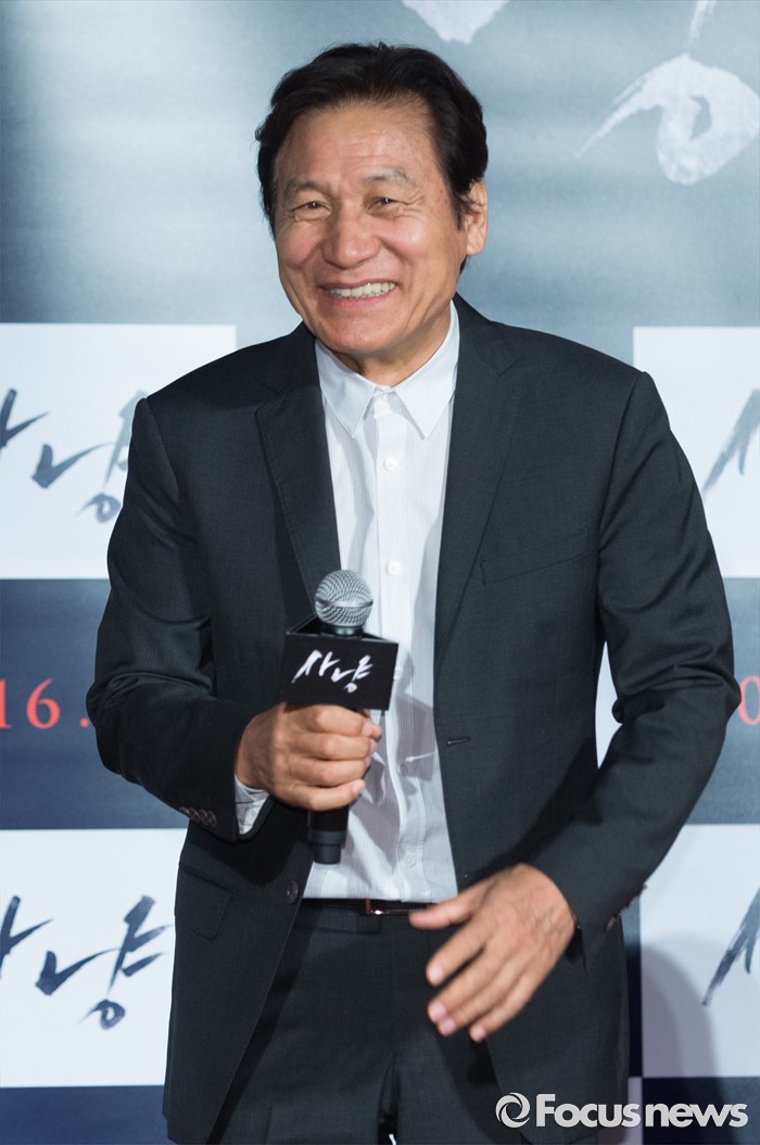 (서울=포커스뉴스) 30일 오전 서울 광진구 건대입구 롯데시네마에서 열린 영화 '사냥' 제작보고회에 참석한 배우 안성기가 미소를 짓고 있다.