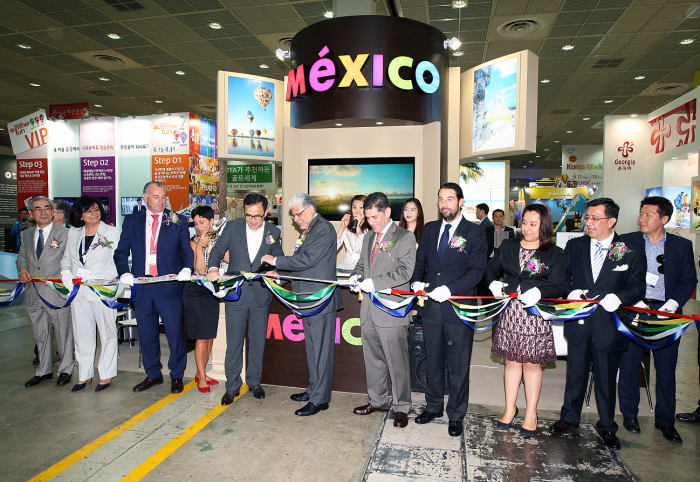 한편 6월10일과 13일에는 각각 서울과 부산에서 멕시코 썸머 카라반을 개최한다. 멕시코의 주요 관광지들을 홍보하는 한편 멕시코와 한국 여행업 관계자들이 소통할 수 있는 자리다.2015년 열린 '한국 국제 관광전'에서 관계자들이 멕시코 관광청 부스 테이프 커팅식이 진행되고 있는 모습. <사진제공=주한멕시코관광청>