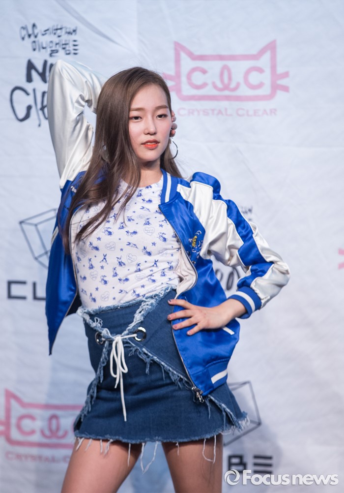 (서울=포커스뉴스) 30일 오후 서울 마포구 롯데카드 아트센터에서 열린 걸그룹CLC의 미니앨범 '뉴 클리어(NU.CLEAR) ' 발표 쇼케이스에 참석한 멤버 장예은이 포토타임을 갖고 있다.
