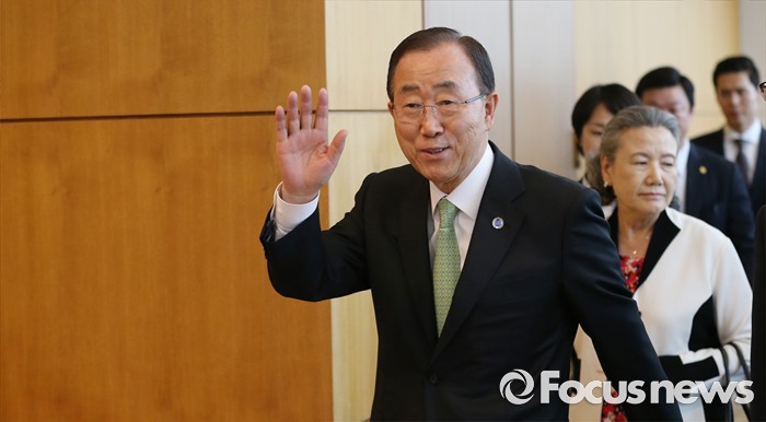 (인천공항=포커스뉴스) 방한일정을 마친 반기문 유엔 사무총장이 30일 오후 인천국제공항에서 출국에 앞서 취재진에 손을 들어 인사하고 있다.
