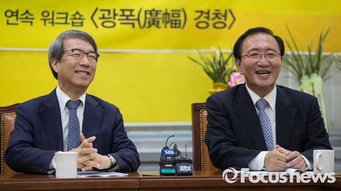 (서울=포커스뉴스) 노회찬 정의당 원내대표(오른쪽)가 31일 오전 국회에서 열린 정운찬 동반성장연구소 이사장 초청 특별강연에서 정 이사장과 대화 하고 있다. 이날 강연은 정의당의 '성역없이 듣겠습니다'란 이름의 의원단 연속 워크숍 '광폭 경청'의 일환으로 열렸으며 정 이사장은 '제20대 국회와 경제민주화'를 주제로 강연했다.