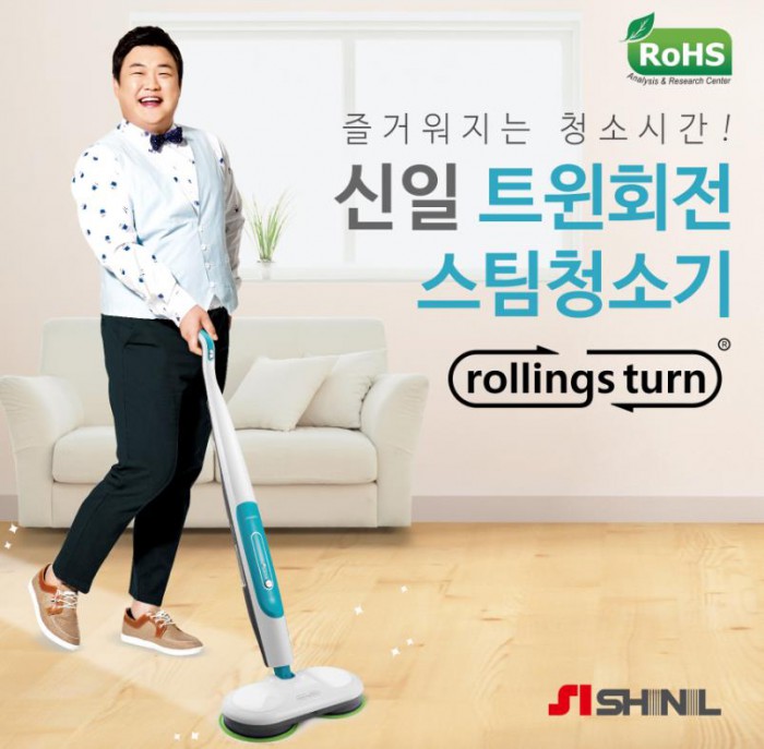 신일산업 판매사업본부 정윤석 전무는 "'롤링스턴'은 소비자 편의성을 고려해 물걸레 청소를 보다 쉽고 깔끔하게 할 수 있도록 선보인 제품"이라며 "앞으로 TV홈쇼핑은 물론 다양한 유통 채널을 통해 다양한 혜택을 제공하며 고객만족을 이끌어 나가겠다"고 밝혔다.신일산업 모델 개그맨 김준현이 트윈회전 스팀청소기 '롤링스턴'을 선보이고 있다.<사진제공=신일산업>