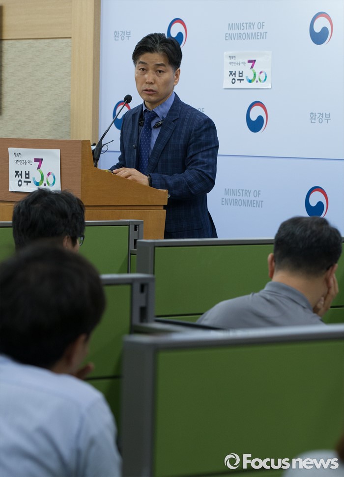 (세종=포커스뉴스) 서흥원 환경부 환경보건정책과장이 31일 오전 세종시 정부세종청사 환경부 기자실에서 가습기살균제 피해 지원 지자체와 함께 한다는 브리핑을 하고 있다.