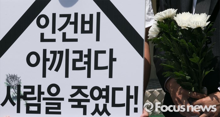 (서울=포커스뉴스) 31일 오후 서울 광진구 지하철 구의역 앞에서 한국청년연대 등 청년단체들이 스크린도어 정비 작업 중 사고로 숨진 김모(19) 씨 사건 항의 기자회견을 하고 있다.
