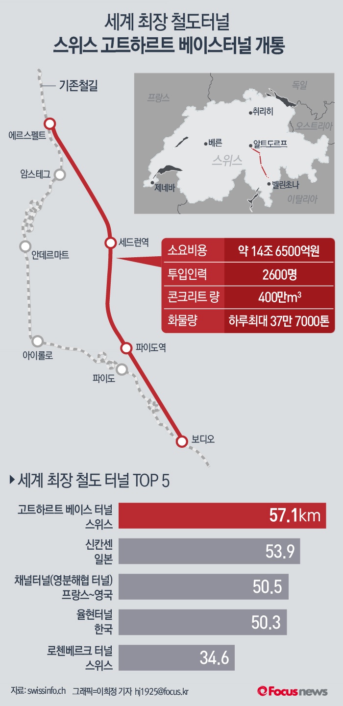 | △ [그래픽] 세계 최장 철도터널 스위스 고트하르트 베이스터널 개통 |
