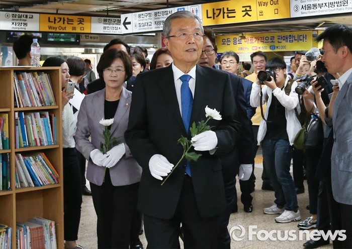 | △ 구의역 추모공간 방문한 김종인 |