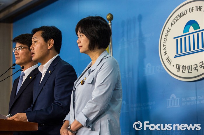 (서울=포커스뉴스) 야3당 원내수석부대표들이 31일 오후 서울 여의도 국회에서 가습기 살균제 사건, 세월호특별법 제정, 어버이연합 게이트 등 현안 공조 관련 기자회견을 하고 있다. 왼쪽부터 박완주 더불어민주당 원내수석부대표, 김관영 국민의당 원내수석부대표, 이정미 정의당 원내수석부대표.