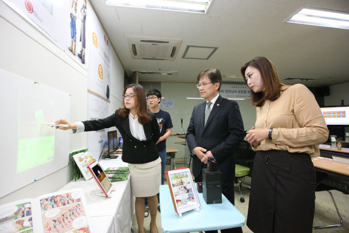 이번 현장방문에서는 교육 분야 클라우드 규제개선에 따른 기업의 사업추진 방향과 건의사항 등 현장의 목소리 청취뿐 아니라 김진숙 한국교육학술정보원 본부장의 교육분야 정보통신기술(ICT) 활용방안에 대한 발표도 같이 진행됐다.
