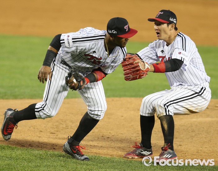 (서울=포커스뉴스) 31일 서울 잠실구장에서 열린 2016 프로야구 KIA-LG 경기 4회초 1사 2,3루에서 KIA 한긍택의 희생번트를 LG 3루수 히메네스가 잡고 있다. 오른쪽은 2루수 손주인.