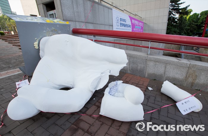 | △ 파손된 홍대 일베 조형물 |