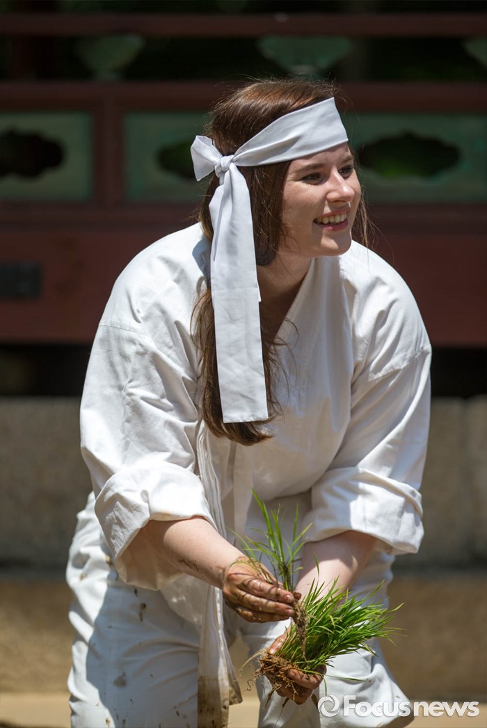 (서울=포커스뉴스) 1일 오전 서울 종로구 창덕궁 내 옥류천 청의정에서 손 모내기 행사가 열리고 있다. 손 모내기 행사는 조선시대 임금이 궁궐 안에 경작지를 조성, 그 해 농사의 풍년과 흉년을 예상해보기 위해 시행했던 친경례(親耕禮) 의식의 의미를 되살린 것이다.