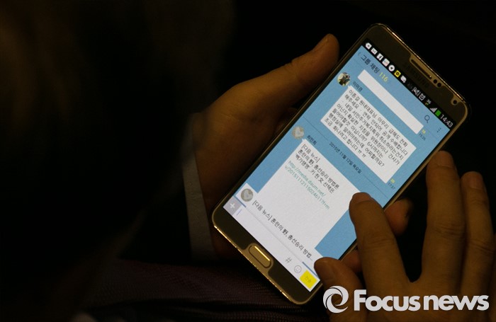 카카오는 지난 1월부터 카카오톡으로 검색이 허용된 공개 URL을 전달할 경우 다음 검색 결과에 반영되도록 했으나 이후 해당 내용에 대한 언론 보도로 논란이 일자 지난 27일 검색 연동을 중지한다는 공지를 올린 바 있다.(서울=포커스뉴스) 지난해 337회 국회(정기회) 11차 본회의에 참석한 문재인 새정치민주연합 대표가 의원들과 메세지를 주고 받고 있다. 2015.11.12 박동욱 기자