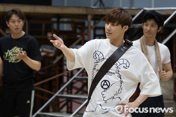 (서울=포커스뉴스) 인피니트 성규가 1일 오후 서울 종로구 아리온 연습실에서 열린 뮤지컬 '올슉업' 연습공개 현장에서 연기를 선보이고 있다.