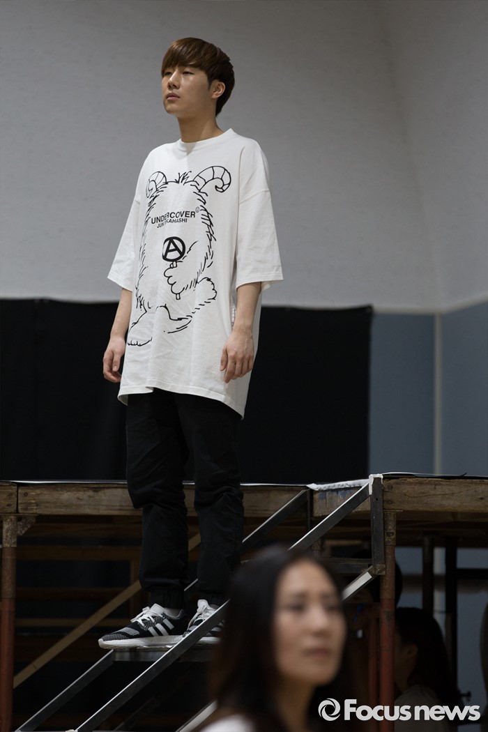 (서울=포커스뉴스) 인피니트 성규가 1일 오후 서울 종로구 아리온 연습실에서 열린 뮤지컬 '올슉업' 연습공개 현장에서 연기를 선보이고 있다.