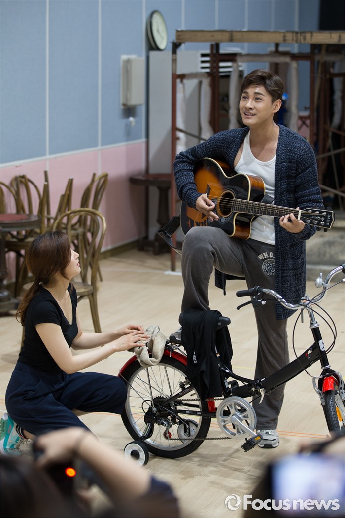 (서울=포커스뉴스) 최우혁(오른쪽)과 안시하가 1일 오후 서울 종로구 아리온 연습실에서 열린 뮤지컬 '올슉업' 연습공개 현장에서 연기를 선보이고 있다.