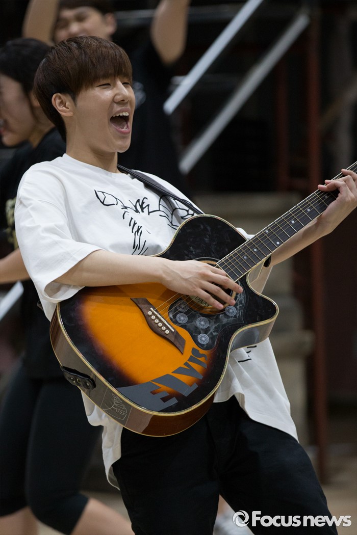 (서울=포커스뉴스) 인피니트 성규가 1일 오후 서울 종로구 아리온 연습실에서 열린 뮤지컬 '올슉업' 연습공개 현장에서 연기를 선보이고 있다.