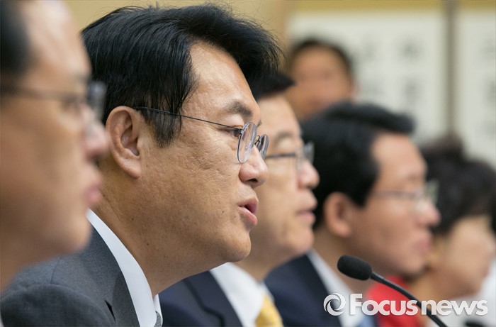 (서울=포커스뉴스) 2일 오전 서울 여의도 국회 귀빈식당에서 열린 미세먼지 대책 관련 당정협의에 참석한 정진석 새누리당 원내대표가 모두발언을 하고 있다.