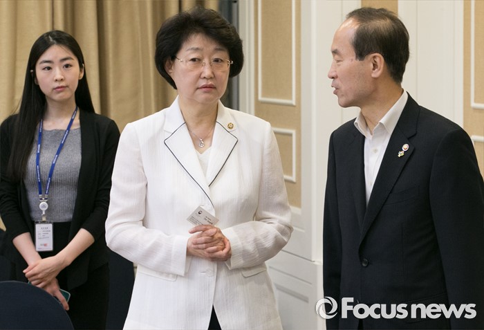 대화하는 환경부 장관과 전 식약처장 출신 김승희 의원
