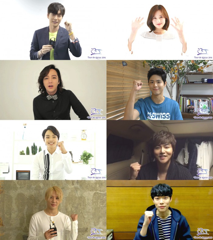 (서울=포커스뉴스) 한류 스타들이 사이클 대회 '2016 투르 드 코리아(Tour de Korea)' 참여 선수들에게 축하 인사를 전했다.