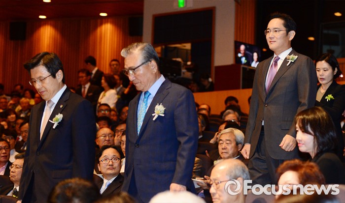 (서울=포커스뉴스) 1일 오후 서울 중구 호암아트홀에서 열린 제26회 호암상 시상식에 황교안 국무총리(왼쪽부터), 손병두 호암재단 이사장, 이재용 삼성전자 부회장이 입장하고 있다.