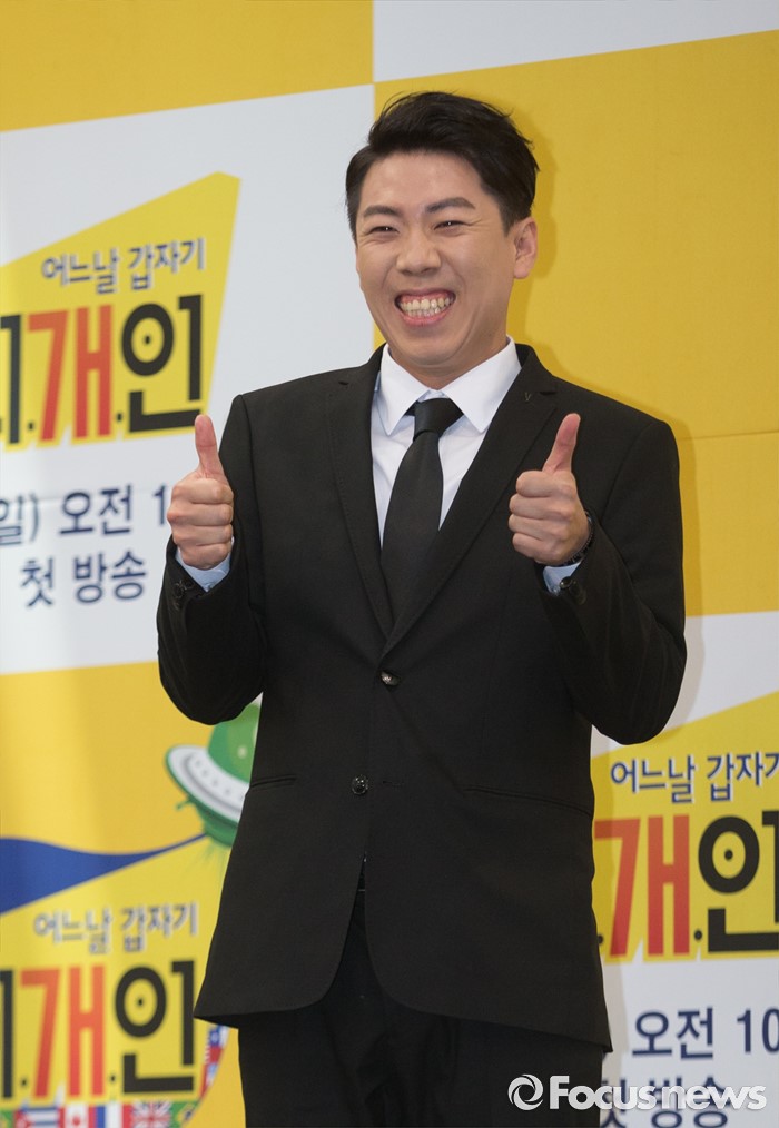 (서울=포커스뉴스) 2일 오전 서울 영등포구 KBS신관 웨딩홀에서 열린 KBS새 예능 프로그램 '어느날 갑자기 외.개.인' 제작발표회에 참석한 개그맨 양세찬이 포토타임을 갖고 있다.
