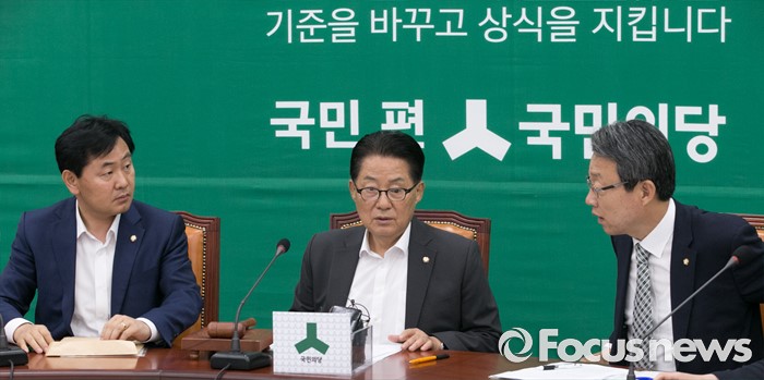 (서울=포커스뉴스) 2일 오전 서울 여의도 국회에서 열린 국민의당 원내정책회의에 참석한 박지원(가운데) 원내대표, 김성식(오른쪽) 정책위의장, 김관영 원내수석부대표가 대화하고 있다.