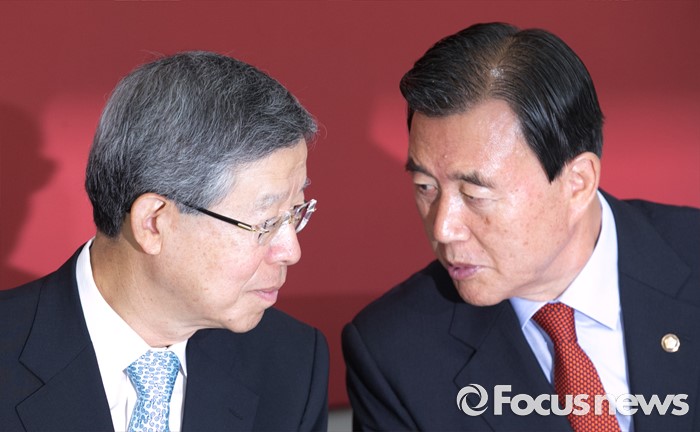 그는 "정책적인 비전을 내놓고, 그 정책 속에서 사람을 만나서 서로 토론을 하고, 국가와 당원들에게 이익을 주려는 노력을 해야지 아침, 저녁으로 밥 먹어가지고 정치한다고 하면 이것 자체가 구태의, 우스운 정치 아니겠나"라며 "조금 유치할지는 모르지만 이번 혁신위가 제도적으로 장치를 해서 이런 짓을 못하게 해야 한다"고도 덧붙였다.김희옥(왼쪽) 새누리당 혁신비대위원장 내정자와 홍문표 사무총장 대행이 27일 오전 서울 여의도 국회에서 김 내정자와 원내지도부의 상견례 자리에 참석해 대화하고 있다. 2016.05.27 박동욱 기자