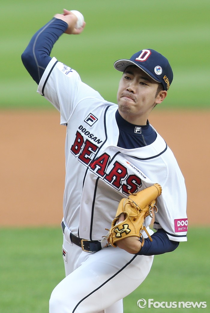 (서울=포커스뉴스) 3일 서울 잠실구장에서 열린 2016프로야구 SK-두산 경기에서 1회초 두산 선발투수 고원준이 투구하고 있다.