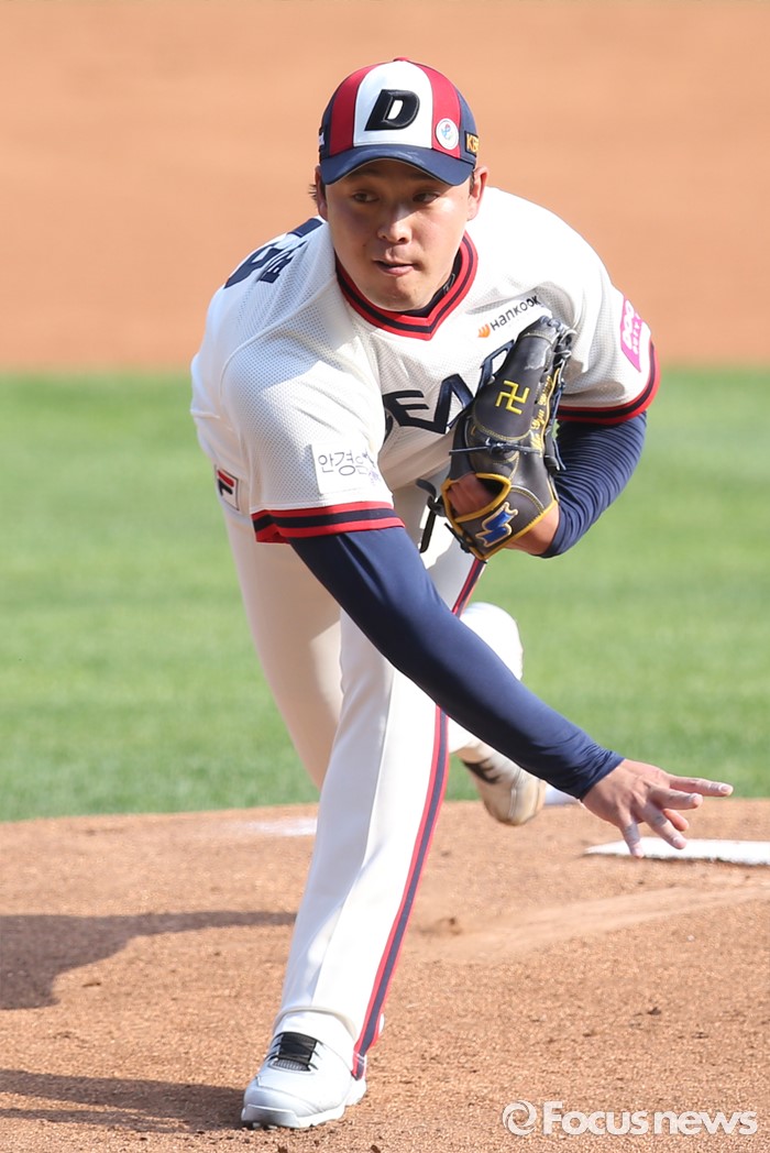 (서울=포커스뉴스) 5일 서울 잠실구장에서 열린 2016프로야구 SK-두산 경기에서 1회초 두산 선발투수 안규영이 투구하고 있다.