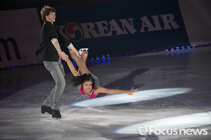 (서울=포커스뉴스) 5일 오후 서울 양천구 목동 아이스링크에서 열린 '2016 올댓스케이트'에 참석한 레베카 김과 키릴 미노프이 공연을 펼치고 있다.