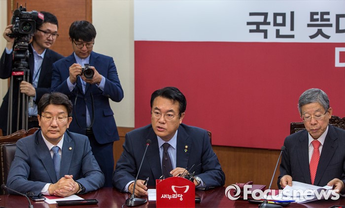 (서울=포커스뉴스) 정진석(가운데) 새누리당 원내대표가 7일 오전 서울 여의도 새누리당사에서 열린 '혁신비상대책위원회의'에 참석해 모두발언 하고 있다.