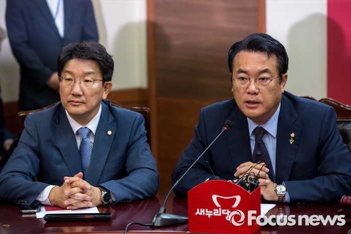(서울=포커스뉴스) 정진석(오른쪽) 새누리당 원내대표가 7일 오전 서울 여의도 새누리당사에서 열린 '혁신비상대책위원회의'에 참석해 모두발언 하고 있다.