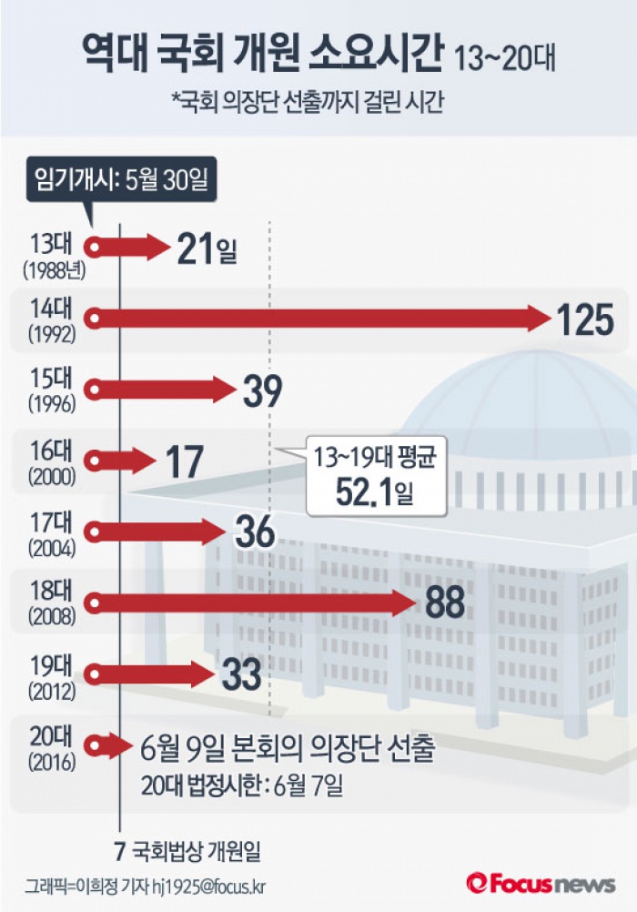 | △ [그래픽] 역대 국회 개원 소요시간 13~20대 |
