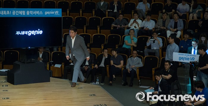 (서울=포커스뉴스) 9일 오전 서울 종로구KT스퀘어에서 열린 KT뮤직 VR서비스 론칭 기자간담회에 참석한 김성욱 KT뮤직 대표가 관련 발표를 위해 이동하고 있다.