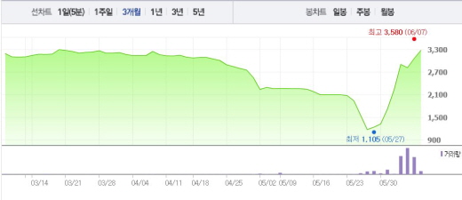 STX는 8일 오전 9시20분 현재 전일 대비 2.77%(85원) 상승한 3150원에 거래되고 있다. STX는 5월27일부터 이달 1일까지 4거래일 연속 상승세를 기록했다. 6월7일에는 8.69%의 상승폭을 나타내기도 했다.