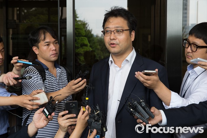 (서울=포커스뉴스) 세월호 특조위 윤천우 조사2과장이 8일 오전 서울 서초구 서울중앙지방검찰청에서 산케이신문 전 서울지국장 사건 관련 자료 확보를 위해 실지조사에 나섰다 검찰 측의 거부로 무산되자 지검을 나와 취재진의 질문에 답하고 있다.