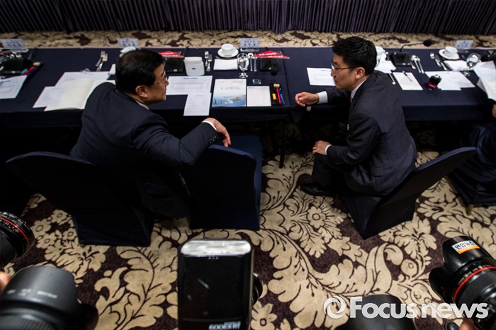 (서울=포커스뉴스) 김정훈(왼쪽) 새누리당 의원과 부산시 당 위원장인 김세연 의원이 8일 오전 서울 여의도 켄싱턴호텔에서 열린 '새누리당 부산시당-부산광역시 당정 협의'에 참석해 대화를 나누고 있다. 이날 부산지역 새누리당 의원 및 부산광역시 관계자들은 당정협의를 통해 가덕신공항 유치와 조선-해양산업 위기 극복에 대한 대책 의견을 교환 했다.