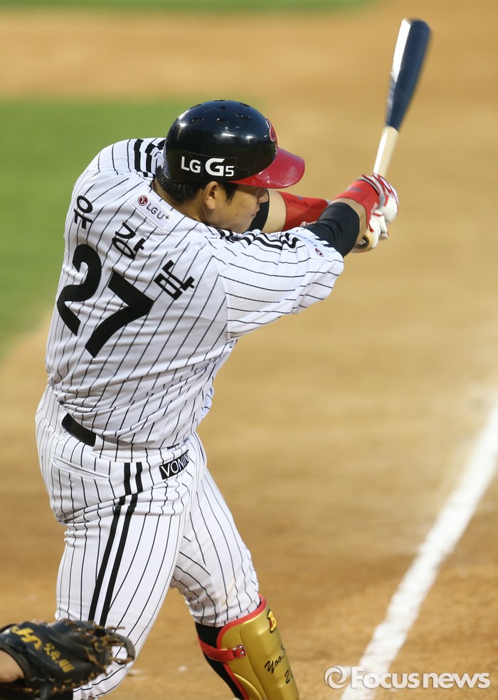 (서울=포커스뉴스) 9일 서울 잠실구장에서 열린 2016 프로야구 삼성-LG 경기에서 LG 유강남이 5회말 연타석 좌월 솔로 홈런을 치고 있다.