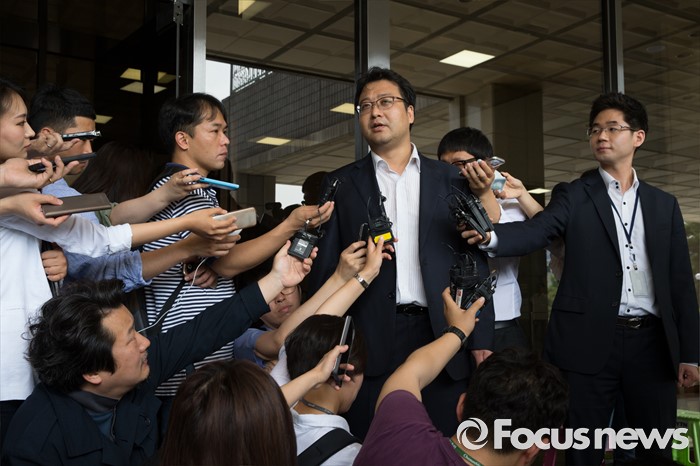 (서울=포커스뉴스) 세월호 특조위 윤천우 조사2과장이 8일 오전 서울 서초구 서울중앙지방검찰청에서 산케이신문 전 서울지국장 사건 관련 자료 확보를 위해 실지조사에 나섰다 검찰 측의 거부로 무산되자 지검을 나와 취재진의 질문에 답하고 있다.