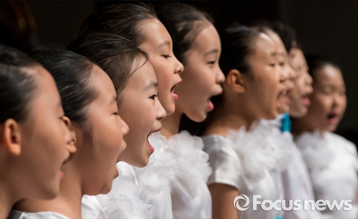 (서울=포커스뉴스) 10일 오전 서울 중구 프레스센터에서 열린 6.10 민주항쟁 제29주년 기념식에 참석한 어린이 합창단원들이 축하공연을 하고 있다.