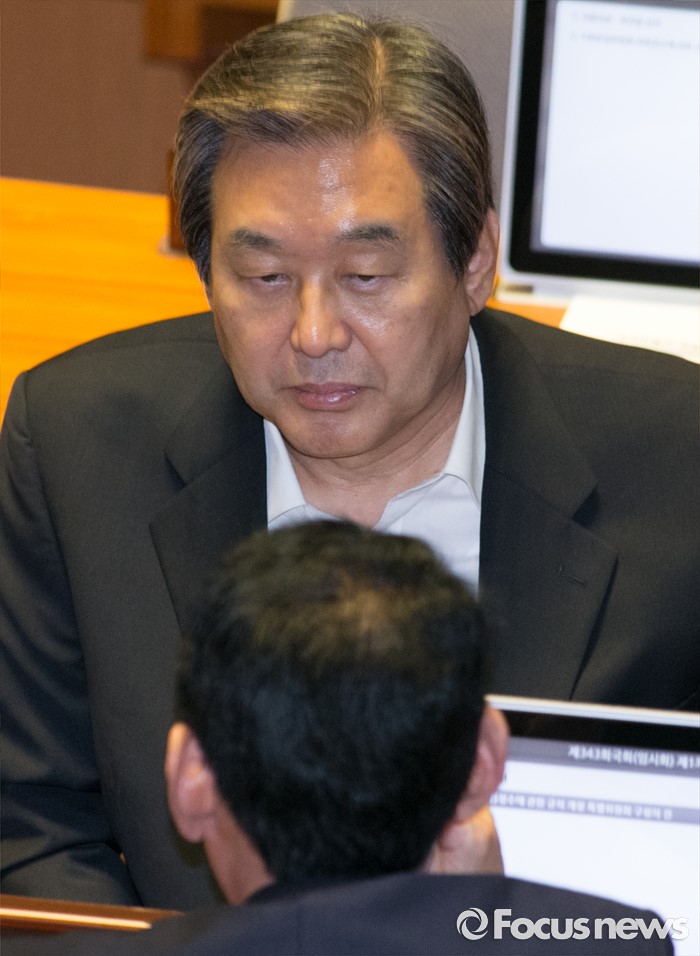 (서울=포커스뉴스) 9일 오후 서울 여의도 국회에서 열린 20대 국회 첫 본회의에 참석한 김무성 새누리당 전 대표가 김도읍 원내수석부대표와 대화하고 있다.