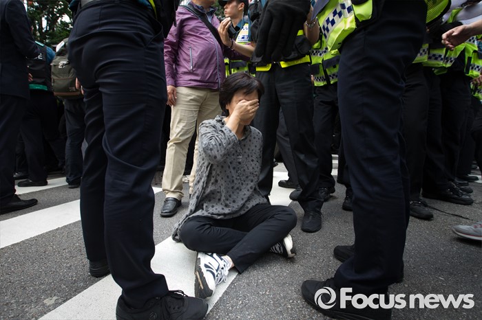 | △ 길바닥에 앉아버린 노조원 |