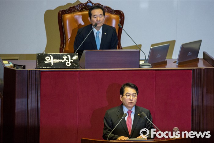 (서울=포커스뉴스) 20대국회 전반기 국회부의장으로 선출된 심재철 새누리당 의원이 9일 오후 서울 여의도 국회에서 열린 본회의에서 선출 소감을 발표 하고 있다.