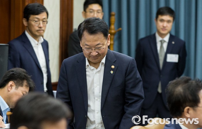 (서울=포커스뉴스) 8일 오전 서울 종로구 정부서울청사에서 열린 구조조정 관계장관회의에 유일호 경제부총리 겸 기획재정부 장관이 참석하고 있다.