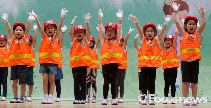 (세종=포커스뉴스) 8일 오후 세종시 조치원읍 문화예술회관에서 열린 제4회 세종 119소방동요 경연대회에 참가한 조치원신봉초등학교 어린이들이 율동을 선보이고 있다.