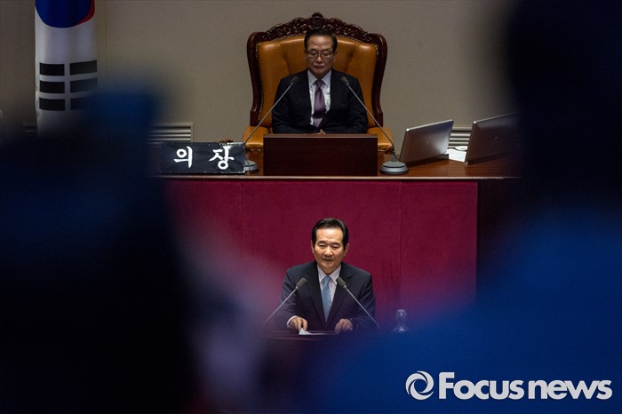 (서울=포커스뉴스) 9일 오후 서울 여의도 국회에서 열린 본회의에서 20대 국회 전반기 국회의장으로 선출된 정세균 더불어민주당 의원이 수락 연설을 하고 있다.