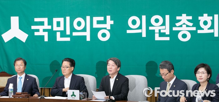 (서울=포커스뉴스) 9일 오전 서울 여의도 국회에서 국회 부의장 후보 선출을 위해 열린 국민의당 의원총회에 참석한 안철수(왼쪽 세번째) 상임공동대표가 모두발언을 하고 있다.